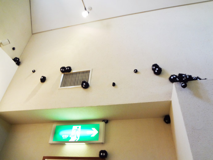 特別企画展として「となりのトトロのぬいぐるみ展」をしていたので、ふと天井を見るとまっくろくろすけが居たのもすごくかわいかったです〜